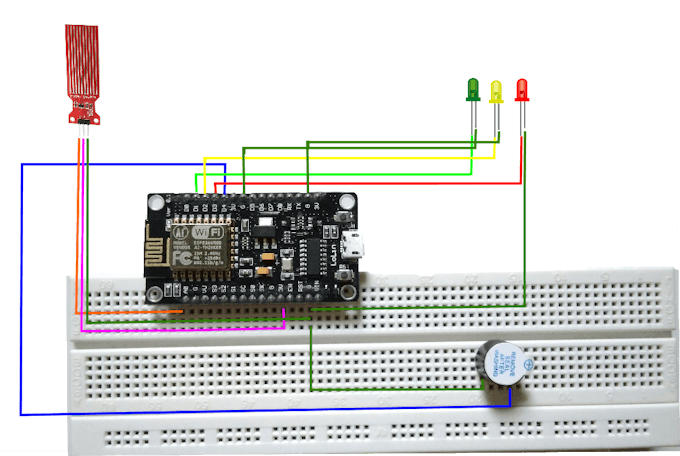 Alat Deteksi Ketinggian Banjir ini terhubung dengan aplikasi blynk akan memonitoring setiap ketinggian air. Setiap data ketinggian airnya akan selalu diupdate di aplikasi Blynk. Dari aplikasi ini juga bisa mengirimkan notifikasi setiap status airnya dalam keadaan aman,waspada, atau berbahaya. Ketika ketinggian air berada dalam batas minimum maka akan menunjukan lampu indikator berwarna hijau. Jika ketinggian air berada di atas batas minimum maka akan menunjukan lampu indikator berwarna kuning. Dan jika ketinggian air berada dibawah batas maksimum maka akan menunjukan lampu indikator berwarna merah dan buzzer akan berbunyi sebagai alarm.