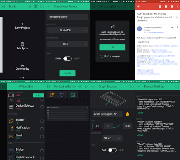 Cara menyeting aplikasi Blynk untuk membaca data dan membuat notifikasi: